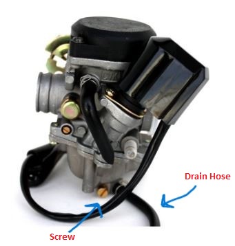 This will be easier on some models over others, but the process is the same one all. The drain is accessed from the Left-hand side of the scooter, and you will need a long flat-head screw driver and a drain pan/bottle. The drain hose should be flopped over/hanging down the Left side CVT cover.